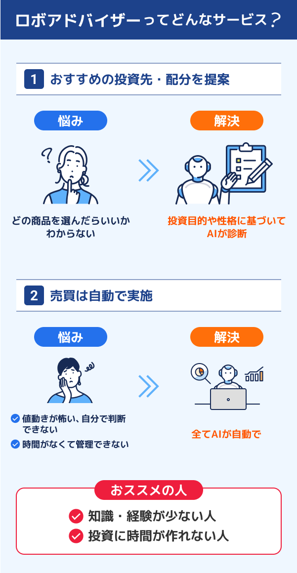 相場状況に応じて資産の比率も変更してくれるので、投資知識のない初心者の方や時間がない方に利用されています。